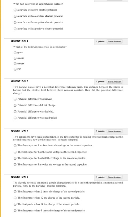 Solved What Best Describes An Equipotential Surface A Chegg Com